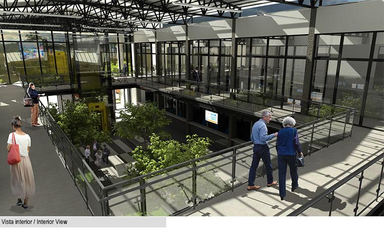 Propuesta conceptual para la reutilización de una bodega en desuso y su conversión en un nuevo centro administrativo de atención a la ciudadanía ubicado frente al parque Juárez en el Barrio de San Miguel. La propuesta busca aprovechar la estructura metálica de la bodega y demuele el edificio de oficinas al frente para generar una fachada translúcida y abierta al ciudadano. Estructuras metálicas a manera de mezanines forman los nuevos espacios flexibles y modulares para las necesidades en constante cambio del gobierno. Un patio interno contiene nueva vegetación que puede ser vista desde cualquier punto y la cafetería tanto de empleados como de visitantes se ubica en segundo nivel con vistas al parque.