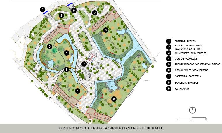 Desarrollo de proyecto ejecutivo partiendo del proyecto conceptual elaborado por el arquitecto holandés Erik Van Vliet para el patronato del zoológico de León como parte de las mejoras integrales para convertirlo en uno de los mejores zoológicos de Latinoamérica. El recorrido parte visitando la exposicion al aire libre sobre el origen de los primates y continua con el hábitat de los chimpancés, después se cruza el puente mirador sobre el hábitat de los gorilas y se arriba al área de descanso con la cafetería y módulo de baños. El recorrido continua visitando los hábitats de los orangutanes y bonobós y concluye con la exposición sobre la evolución humana.